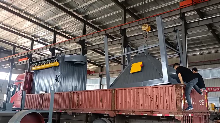 布袋除塵器和活性炭過濾箱安裝裝車發(fā)貨了??蛻舻仁肇洶?。