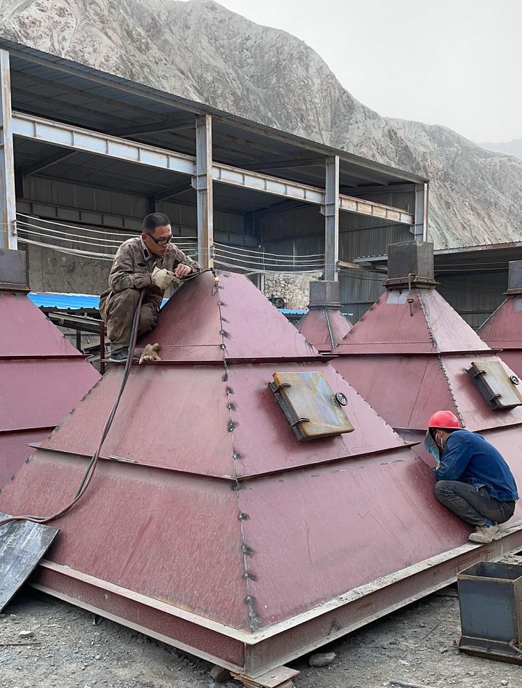我公司最近在新疆銀礦廠合作的氣箱脈沖布袋除塵,由于這套除塵器屬于大型設(shè)備,如果設(shè)備整體運輸?shù)脑挄霈F(xiàn)超高超寬情況,所以我們與現(xiàn)場協(xié)商把除塵器所有板材在廠里切割完成,由17.5米板車運輸至現(xiàn)場,帶著所有配套設(shè)備以及現(xiàn)場制做所需工具。